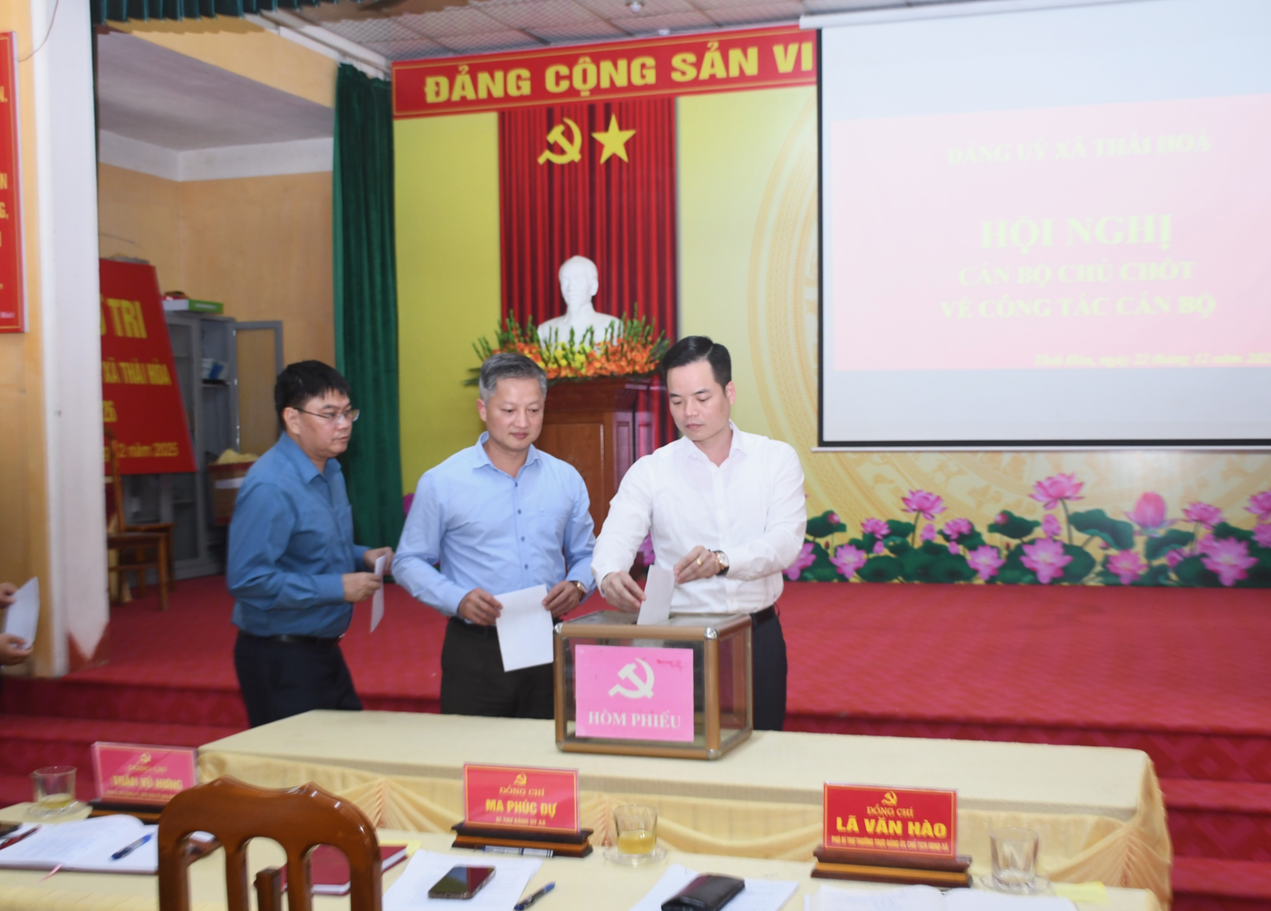 Chiều ngày 22/12/2025, Ban Thường vụ Đảng ủy xã Thái Hòa tổ chức các hội nghị gồm: Hội nghị Ban Chấp hành Đảng bộ xã và Hội nghị cán bộ chủ chốt xã Thái Hòa để thực hiện quy trình lấy phiếu giới thiệu và phiếu biểu quyết nhân sự bầu bổ sung Ủy viên Ban Chấp hành Đảng bộ xã Thái Hòa, nhiệm kỳ 2025-2030.