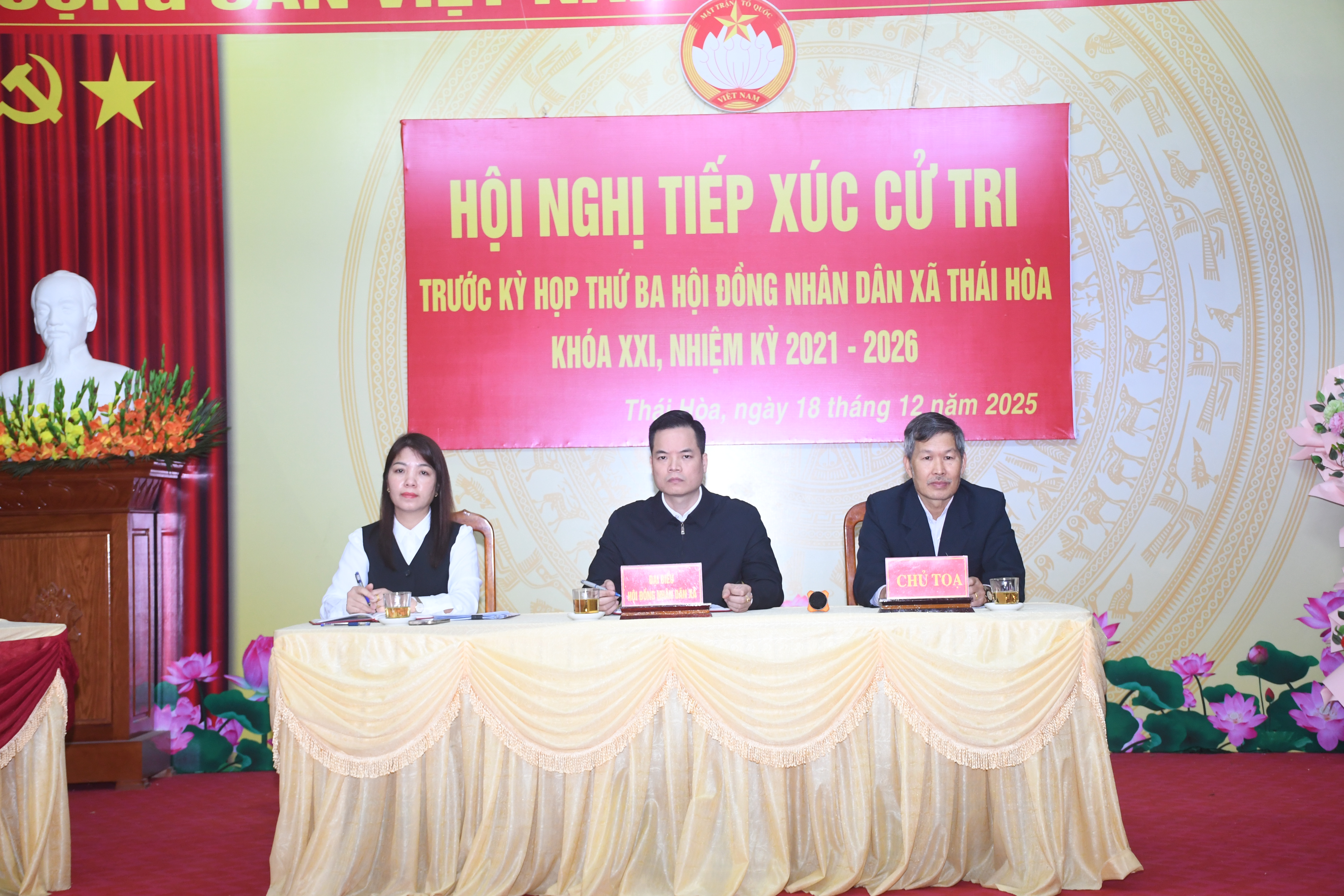 Từ ngày 16-18/12/2025, tại nhà văn hóa các cụm thôn, các tổ đại biểu HĐND xã Thái Hòa đã tổ chức các hội nghị tiếp xúc cử tri trước kỳ họp thứ ba HĐND xã khóa XXI, nhiệm kỳ 2021 – 2026. Dự các hội nghị tiếp xúc cử tri có các đồng chí lãnh đạo Đảng ủy, HĐND, UBND, Uỷ ban MTTQ Việt Nam xã Thái Hòa cùng các đại biểu HĐND xã thuộc các tổ đại biểu và đông đảo cử tri các thôn.