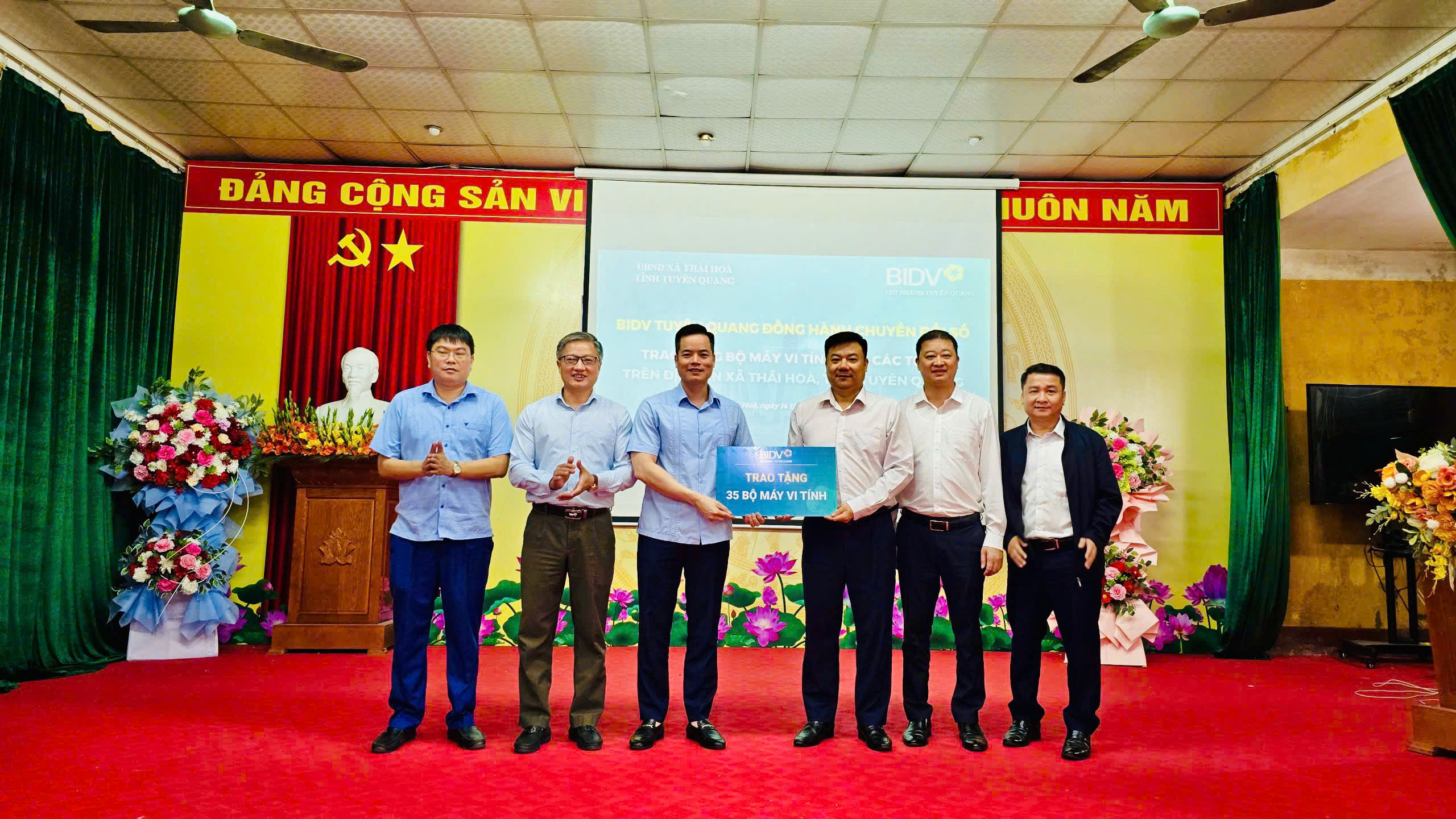 Ngân hàng Thương mại Cổ phần Đầu tư và Phát triển Việt Nam (BIDV) – Chi nhánh Tuyên Quang trao tặng 35 bộ máy tính cho xã Thái Hòa.